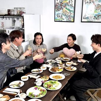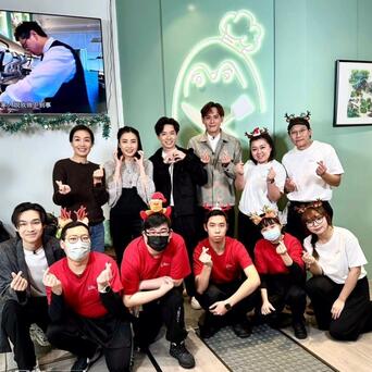 甘比在社交网贴出多张与江美仪及主持人的合照,照片中见他们到秀桦厨房大叹圣诞餐,又跟甘比学钩织。